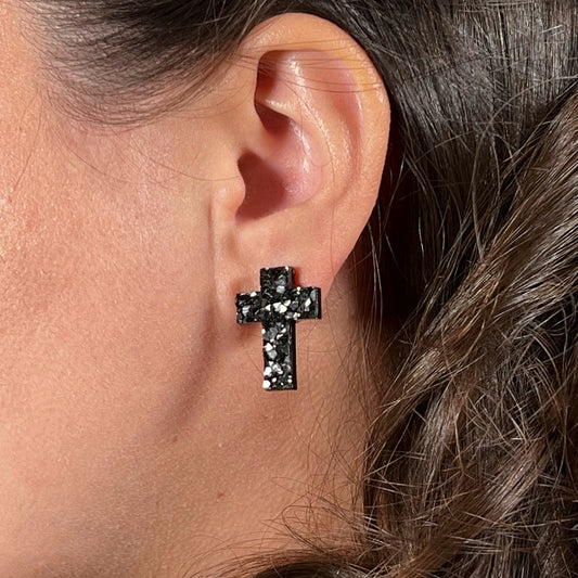 The most sparkling and gorgeous earrings you’ve ever seen. These large hearts were inspired by one of the most iconic supermodels of the '90s. Deep noir encased in a gold frame with incredible radiance that magnetizes admiring glances.